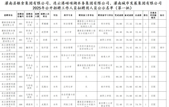 权威发布!灌南国企最新入围人员名单公布,